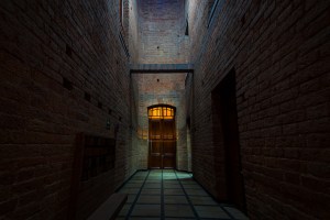 Pasillo en la sede de Comfama de Aranjuez, en Medellín, Colombia. Antiguo Manicomio departamental de Antioquia, en donde estuvo hospitalizado el poeta Epifanio Mejía.